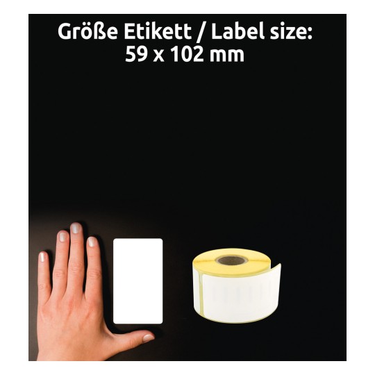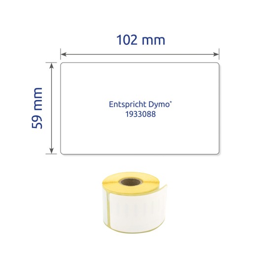Roll Etichete 59 x 102 mm, Direct Thermal Printer, Dymo LabelWriter* 300-Serie, 400-Serie, 450-Serie, 4XL, Wireless, Roll, Corresponds to the Dymo® 1933088 & Dymo® LabelWriter™ (LW Wireless, LW310, LW330T, LW400, LW450 Series, 4XL)
