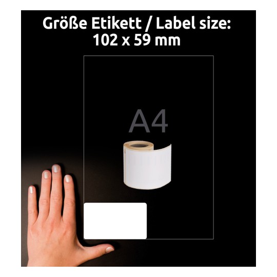 Roll Etichete 59 x 102 mm, Direct Thermal Printer, Dymo LabelWriter* 300-Serie, 400-Serie, 450-Serie, 4XL, Wireless, Roll, Corresponds to the Dymo® 1976414 & Dymo® LabelWriter™ (LW Wireless, LW310, LW330T, LW400, LW450 Series, 4XL)