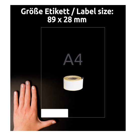 Roll Etichete 28 x 89 mm, Direct Thermal Printer, Dymo LabelWriter* 300-Serie, 400-Serie, 450-Serie, 4XL, Wireless, Roll